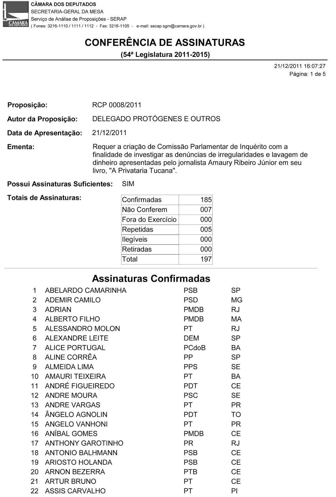 Segue a inútil lista de assinaturas de diversos deputados para início de CPI que nunca ocorrerá, ou caso ocorra jamais terá um julgamento, por que os PSDB é quem faz as regras.