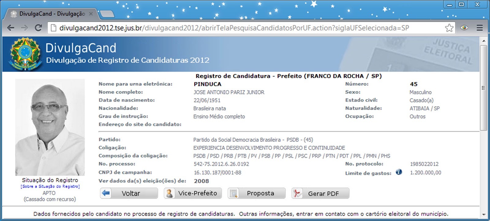Fonte: TSE 2008 e 2012 CERTIDÃO POSITIVA DE DÉBITOS TRABALHISTAS Certifica-se que COOPSERV SOCIEDADE COOPERATIVA DOS PROFISSIONAIS NA AREA DA SAUDE(MATRIZ E FILIAIS), inscrito(a) no CNPJ sob o nº 01.062.990/0001-55, CONSTA do Banco Nacional de Devedores Trabalhistas em face do inadimplemento de obrigações estabelecidas no(s) processo(s) abaixo:Total de processos: 55. Certifica-se que NOVACOOP SOCIEDADE COOPERATIVA DE TRABALHO E PRESTACAO DE SERVICOS (MATRIZ E FILIAIS), inscrito(a) no CNPJ sob o nº 02.993.259/0001-06,CONSTA do Banco Nacional de Devedores Trabalhistas em face do inadimplemento de obrigações estabelecidas no(s) processo(s) abaixo: Total de processos: 18.